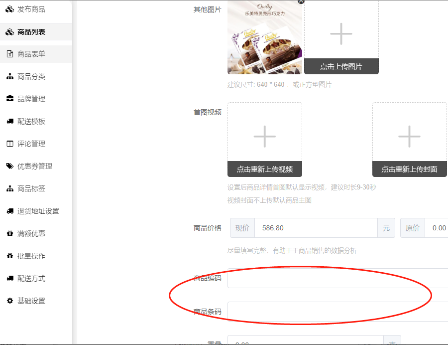 回复:检查一下商品编辑--基本信息、或者是否是多规格商品,规格里面的商品编码、商品条码是否都有填写完整