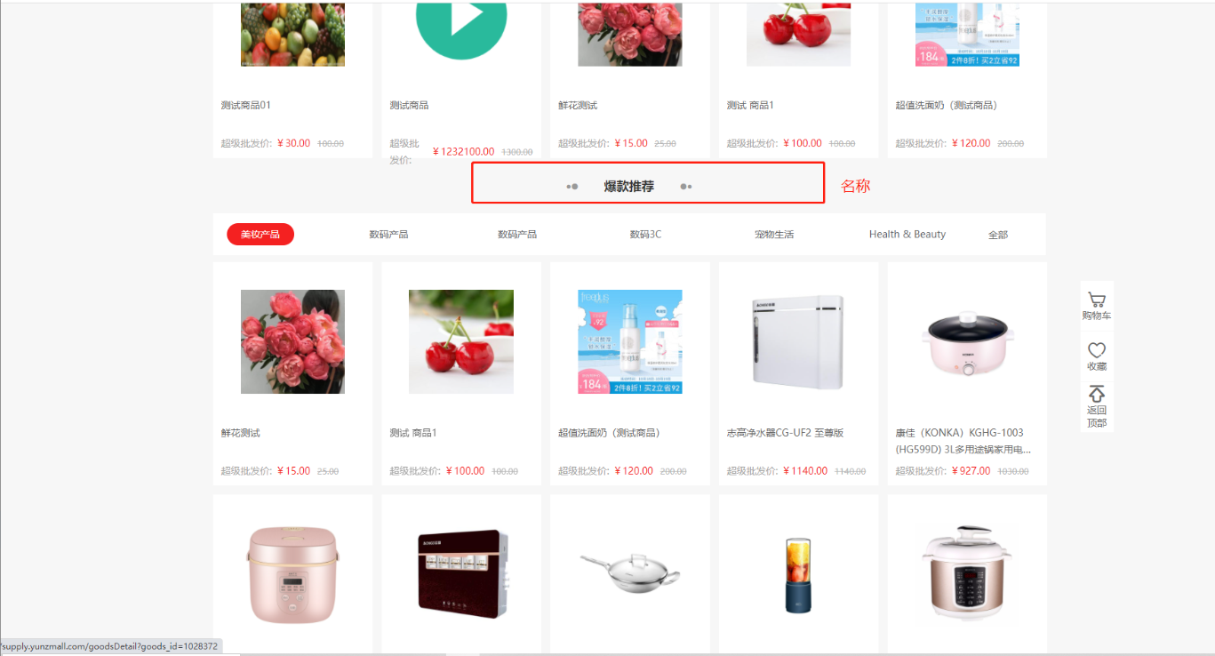 后台设置的热销商品组,显示如下:
